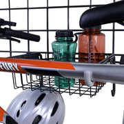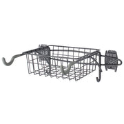 Holds all bike gear in one place. Securely holds one adult or child’s bike horizontally for ease of use. Integrated basket and hooks store water bottles, helmets, shoes and other equipment.