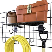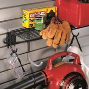 Ideal for spreaders, leaf blowers, and garden carts. Fixed shelf conveniently stores work gloves, goggles, and supplies.
